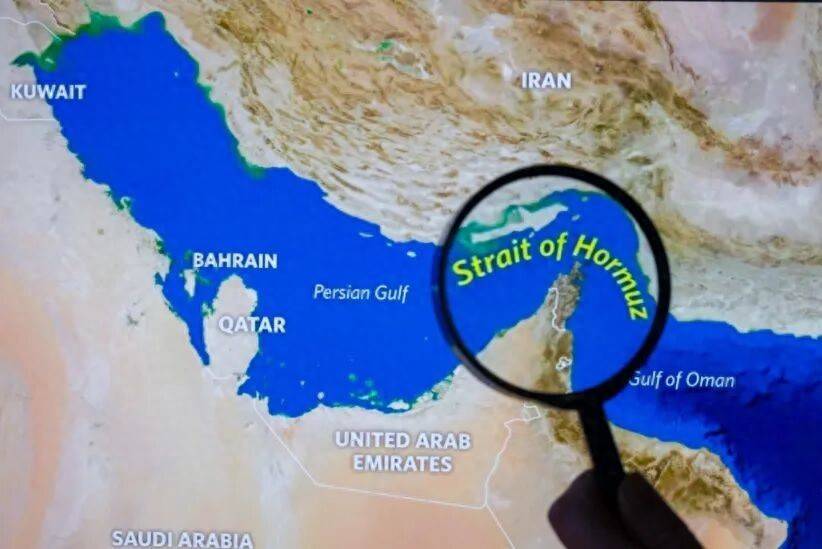 ▲通过放大镜拍摄的霍尔木兹海峡照片。图/IC photo